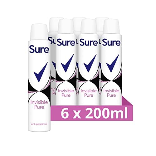 Sure Invisible Pure Anti-Perspirant Aerosol deodorant for women that protects against white marks and yellow stains for 48-hour sweat and odour protection 6x 200 ml