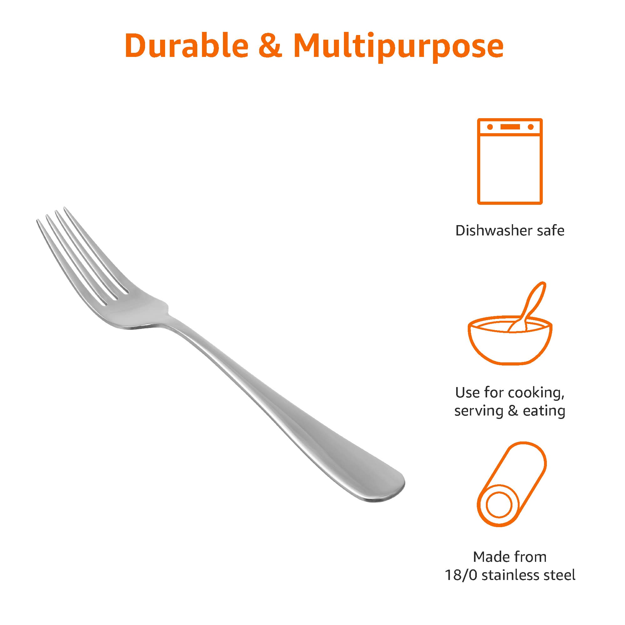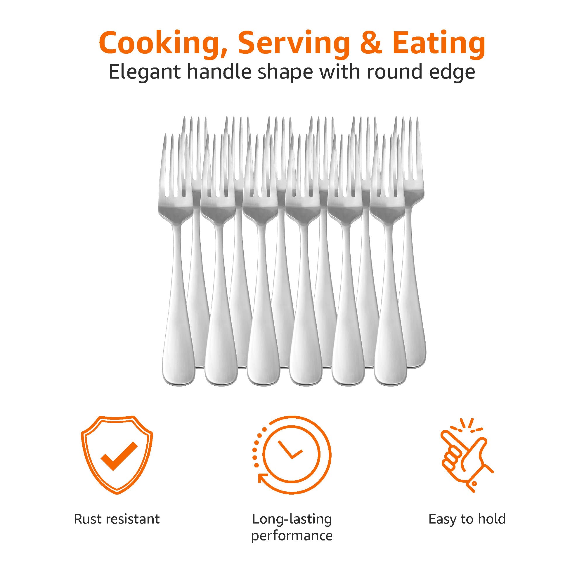 Amazon Basics Stainless Steel Dinner Forks with Round Edge, Dishwasher Safe, Pack of 12, Silver