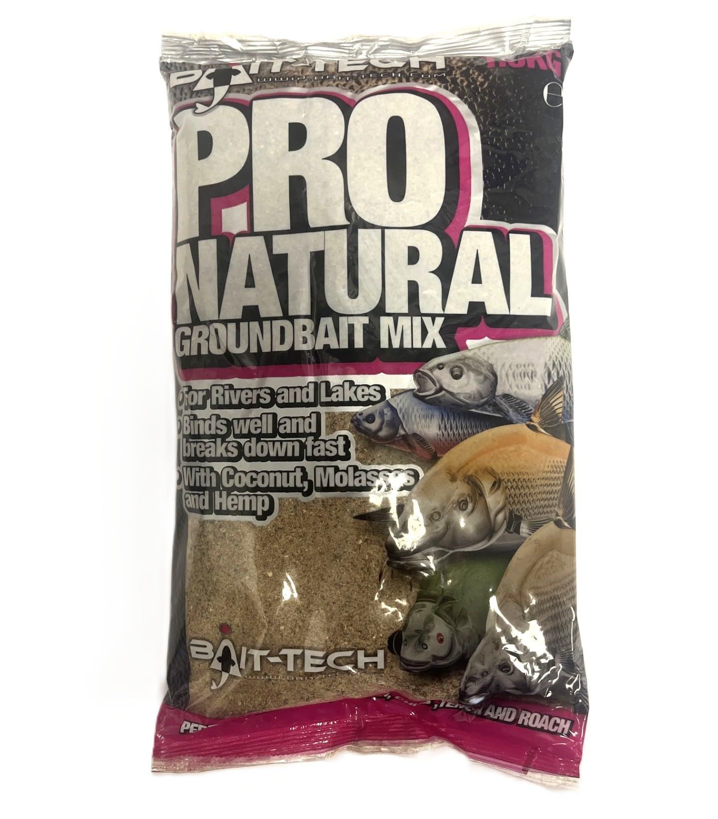 Details: Bait-Tech Pro-Natural Groundbait Mix, Built around 25 years of bait manufacturing experience and after more than 12 months of testing and development, Bait-Tech has launched its Pro Natural Groundbait Mix. Designed for rivers and natural still waters, this highly acclaimed mix is aimed at the sweeter side of the groundbait spectrum to target silverfish like Barbel, Bream, Chub, Roach, Dace and Tench.