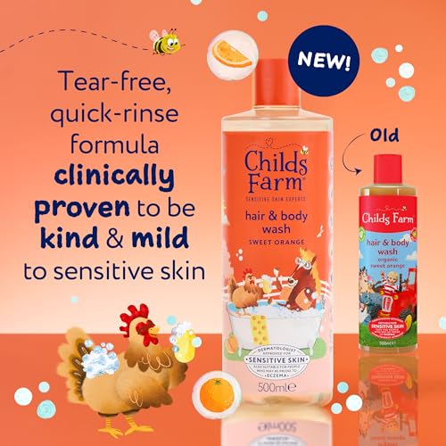 Childs Farm Kids Hair & Body Wash, Sweet Orange | Tear-free, Gently Cleanses | Suitable for Dry, Sensitive Skin, 500ml