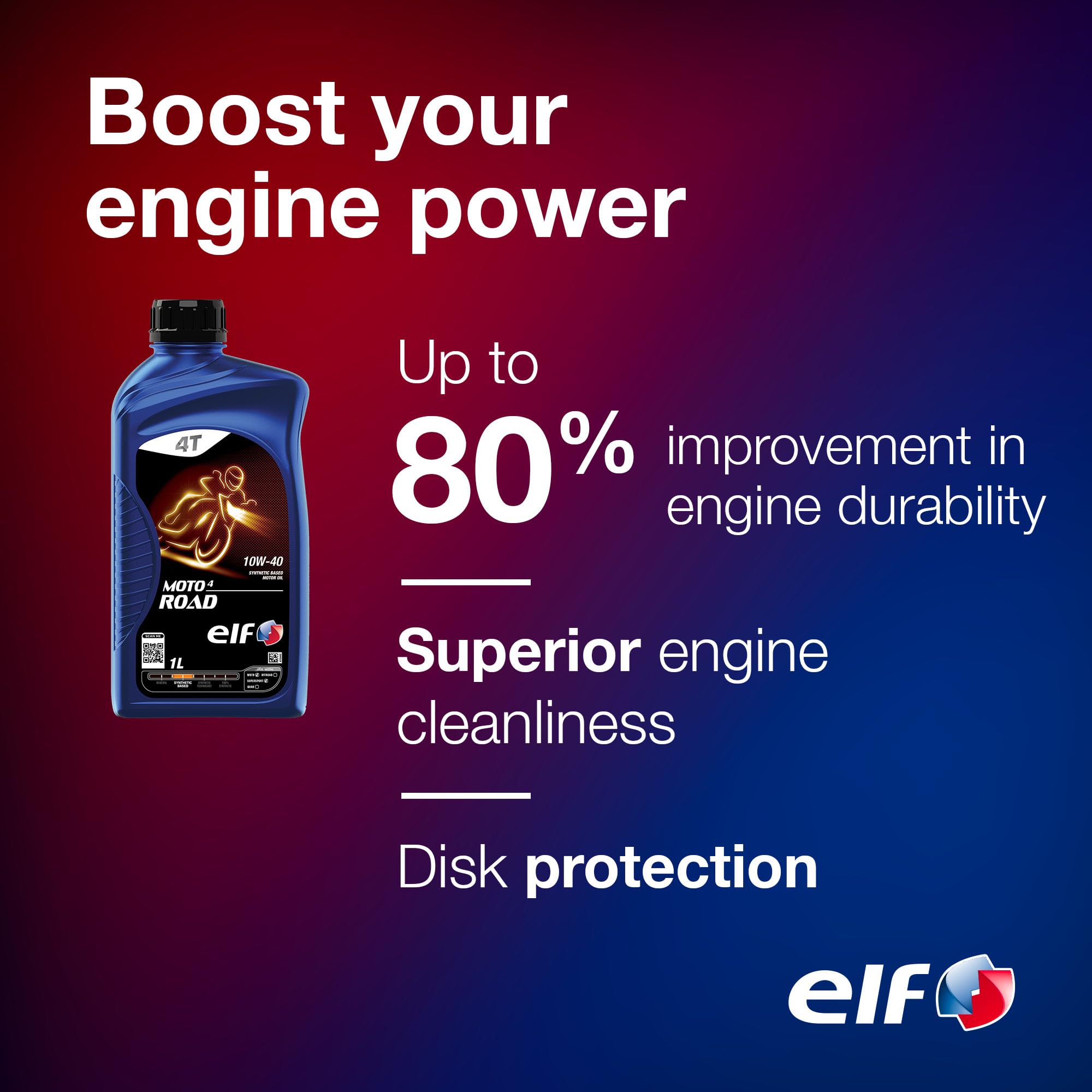 - Elf Motorcycle engine oil ensures easy cold start-ups, fast oil pressure rises and low friction between moving engine components
