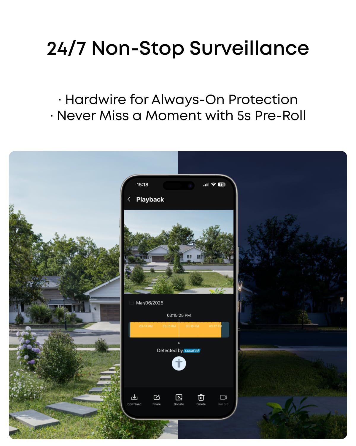 - Get 24/7 Protection with Hardwire Power: For uninterrupted security, hardwire the wireless doorbell camera to your existing doorbell wiring. This ensures you never have to worry about power outages and enables continuous 24/7 recording and 5-second pre-roll for motion-activated events, providing constant protection. Note: Your existing chime needs to be bypassed to ensure proper functionality.