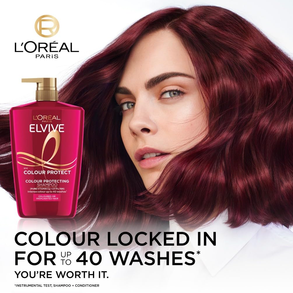 L’Oréal Paris Elvive Colour Protect Shampoo, with Pure Vitamin Cg and UV filters, for Coloured & Highlighted Hair, Suitable for all hair textures, 1000ml
