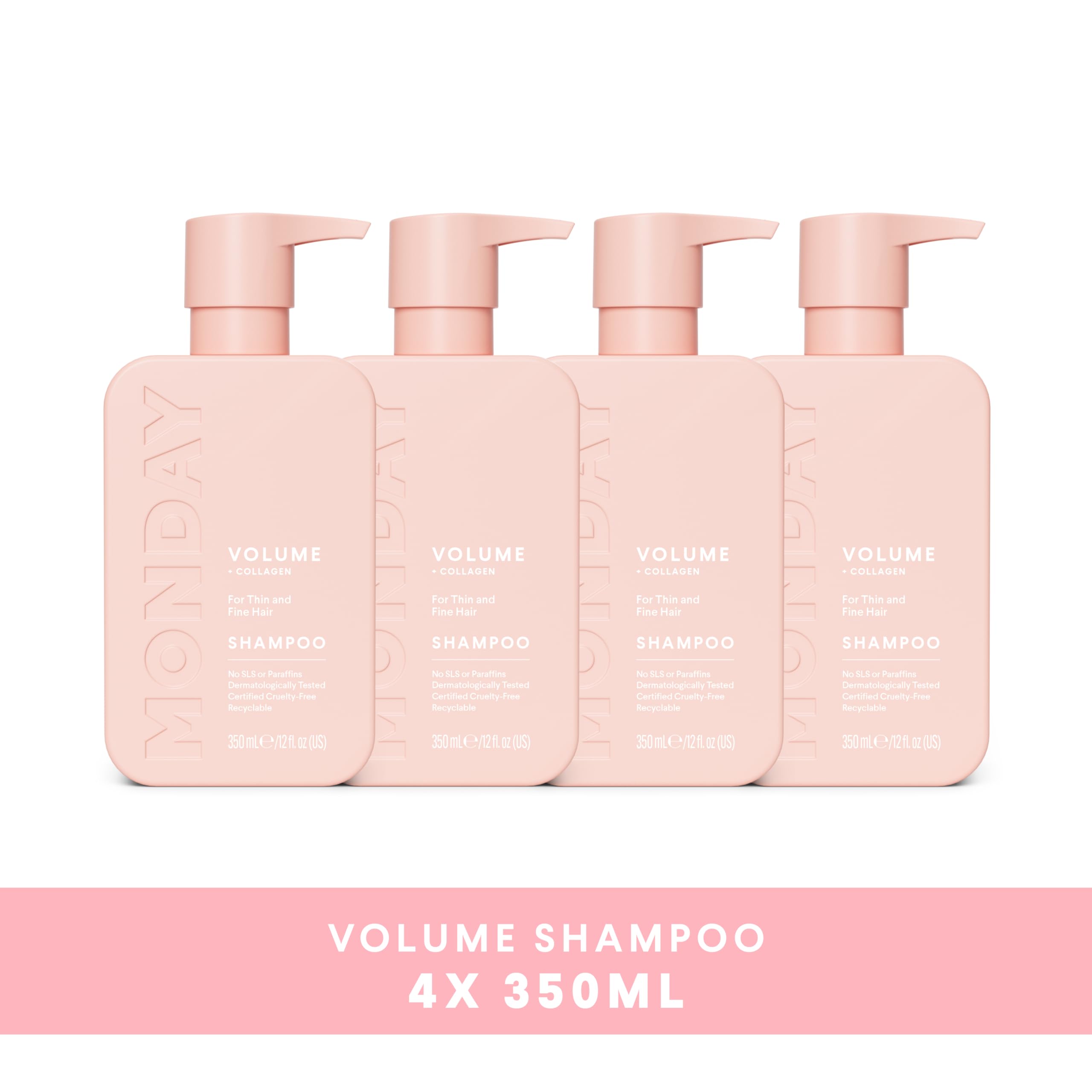 MONDAY Haircare 4 x 350 ml VOLUME Shampoo with Hydrolysed Collagen & Macadamia Oil for Thin, Fine & Flat Hair