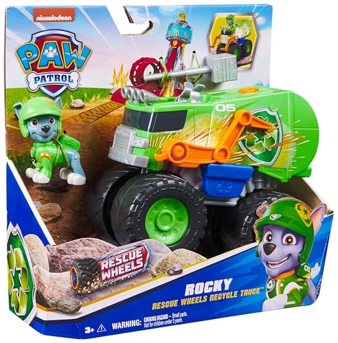Paw Patrol: Rescue Wheels Rocky’s Recycle Truck, Toy Truck with Projectile Launcher and Collectible Action Figure, Kids’ Toys for Boys & Girls Ages 3+