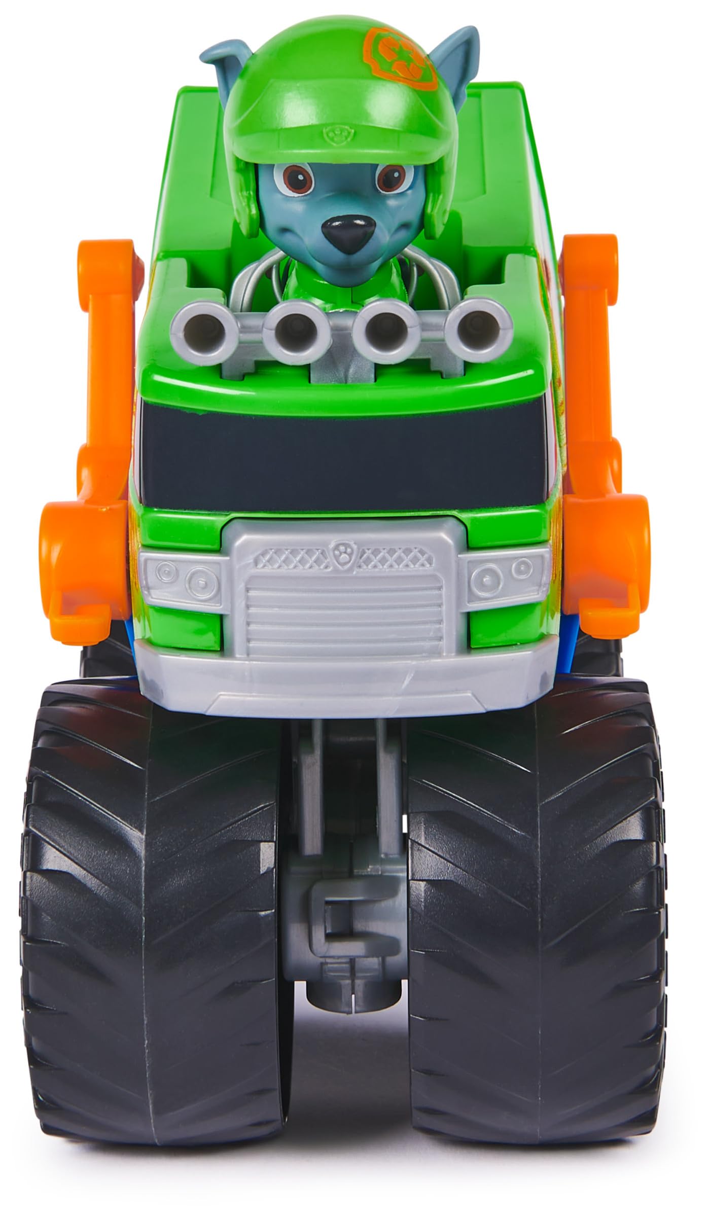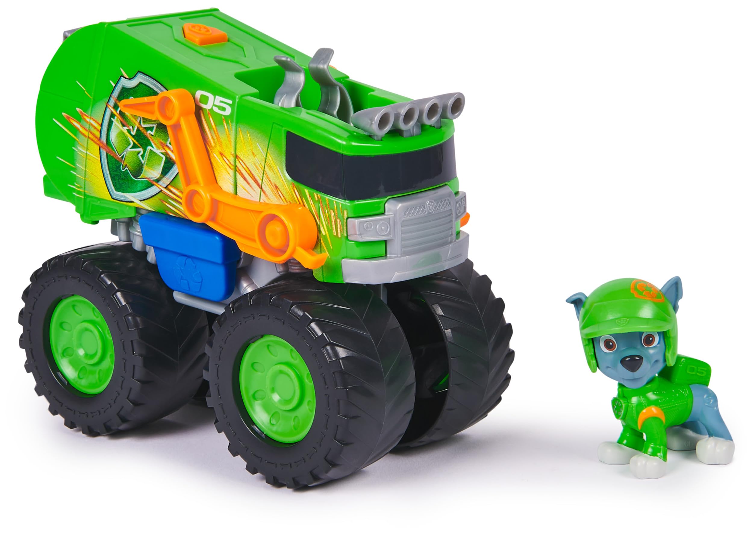 - PROJECTILE LAUNCHER: Rocky’s Recycle Truck themed monster truck comes with 1 rescue projectile. Load the projectile into the launcher, then push the button to fire and save the day