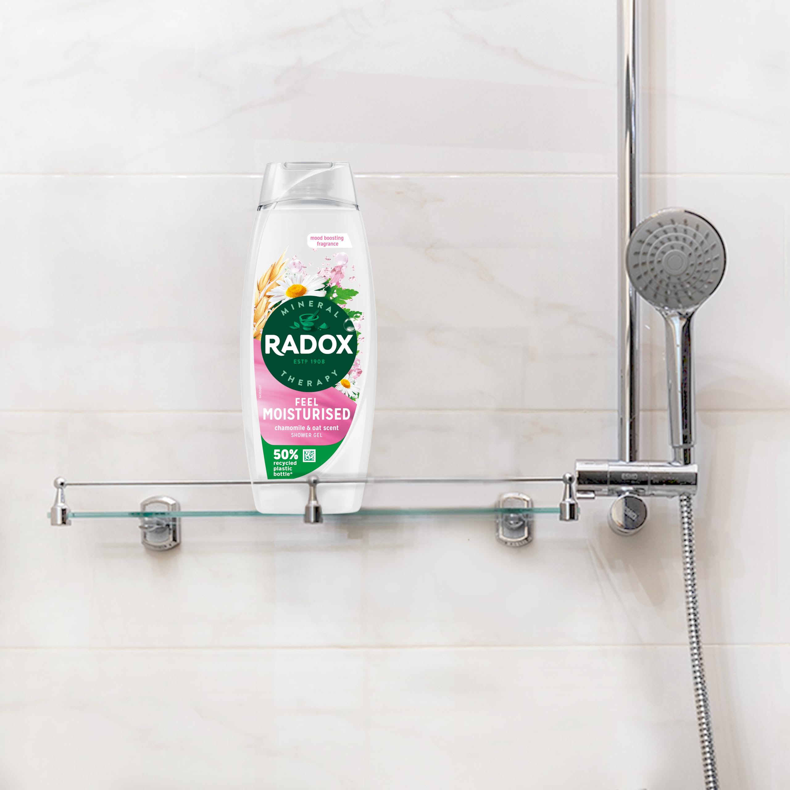 - Make your skin feel calm and restored with RADOX Feel Moisturised Shower Gel, infused with a mood-boosting chamomile and oat fragrance