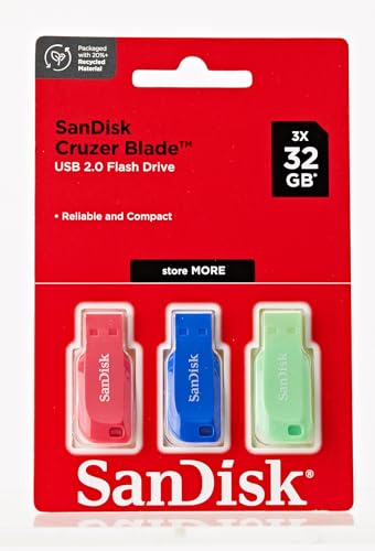 SanDisk 32GB Cruzer Blade USB Flash Drive , Blue/Pink/Green, 3count(Pack of 1)