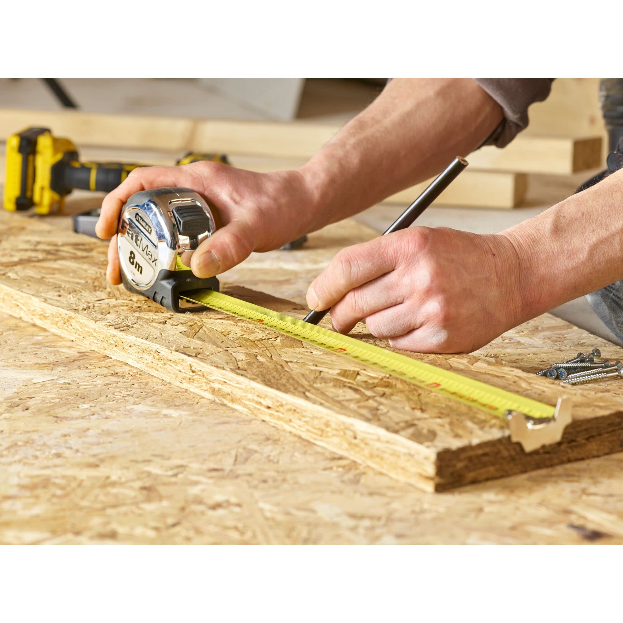 - This FatMax XL tape has a chrome case with rubber grip to withstand heavy uses.