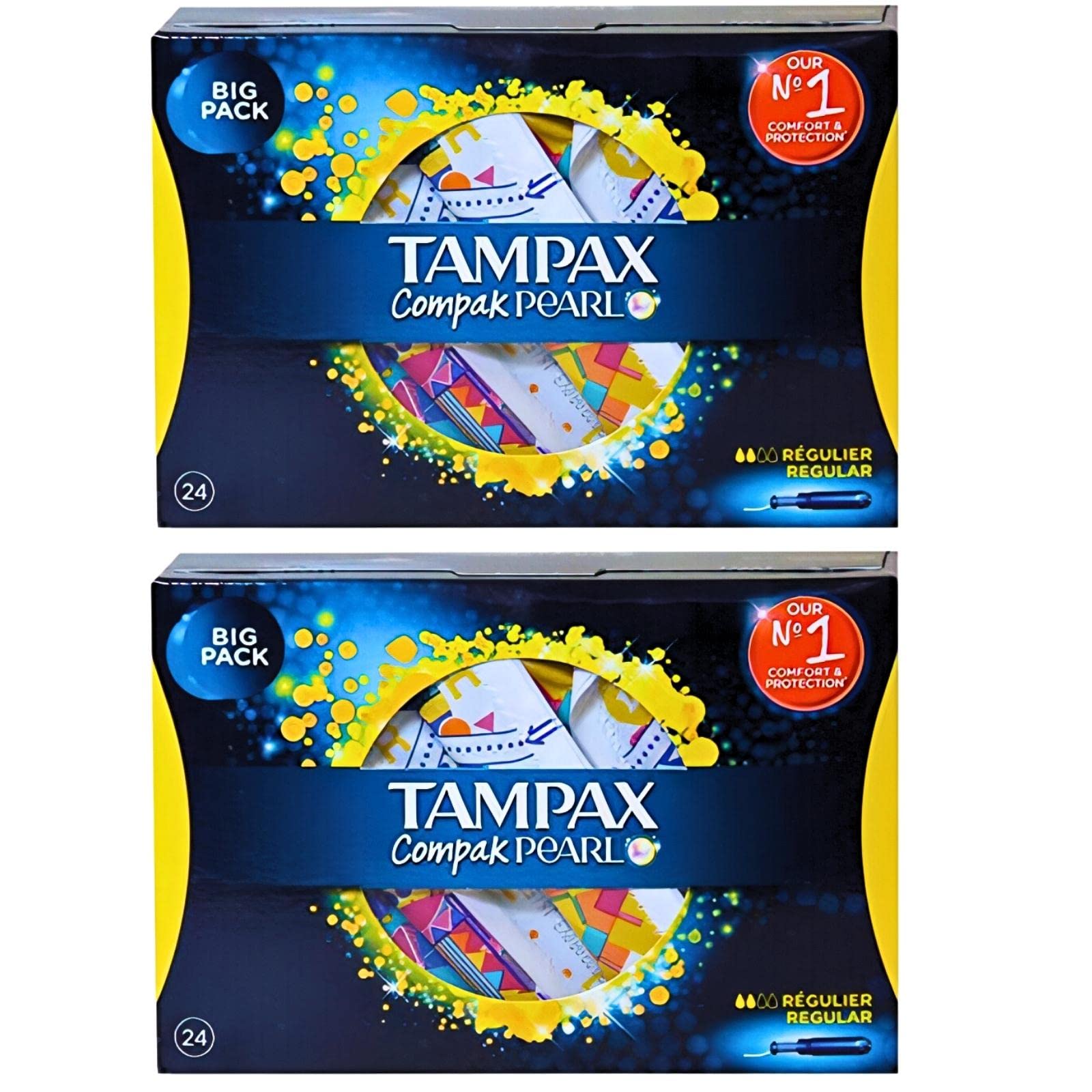 - 2x Tampax Compak Pearl Regular Tampons Applicator 24 count – 48 Total Count